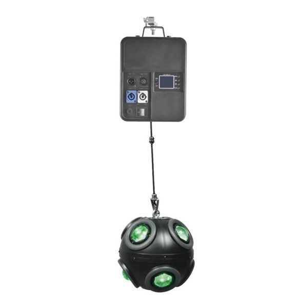 Режимы управления: DMX512, Мастер/Ведомый, Звук. Стробоскоп: 1-25 вспышек/сек или случайный. Вес: 30 кг.