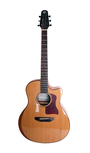 Верхняя дека: массив кедра. Задняя дека и обечайка: красное дерево. Гриф: красное дерево.