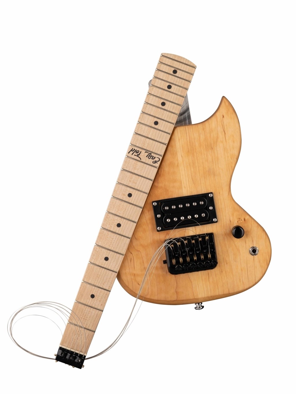 Раскладывание и складывание занимает не больше 5 секунд. Строй плывет всего на четверть тона при раскладывании, да и какую гитару вы не настраиваете прежде, чем играть? Каждый инструмент имеет уникальный серийный номер, по которому мастерская может его идентифицировать и помочь при возникновении вопросов, будь то серийный инструмент или заказной экземпляр.