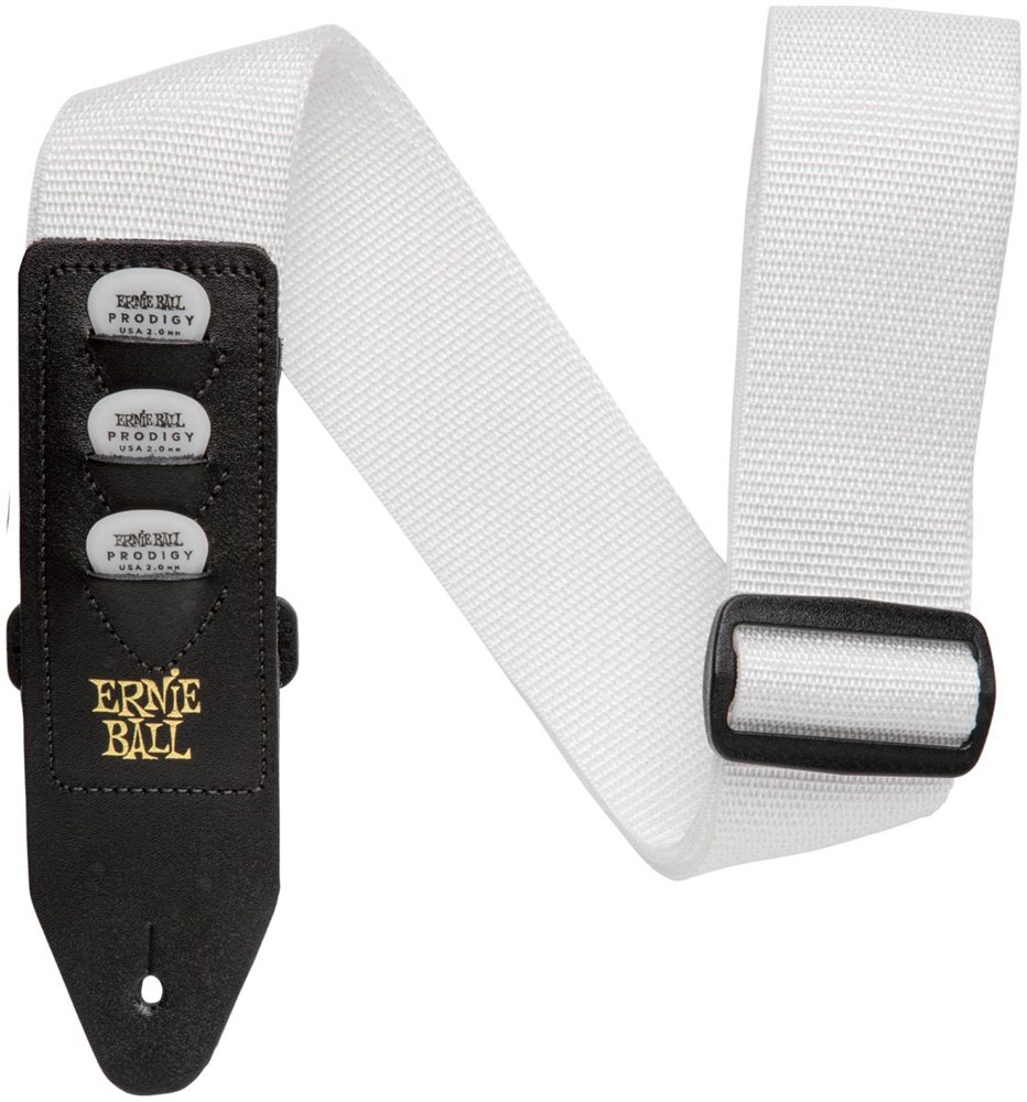 ERNIE BALL 4259 - гитарный ремень Pickholder, полипропилен с кармашками под 3 медиатора/белый