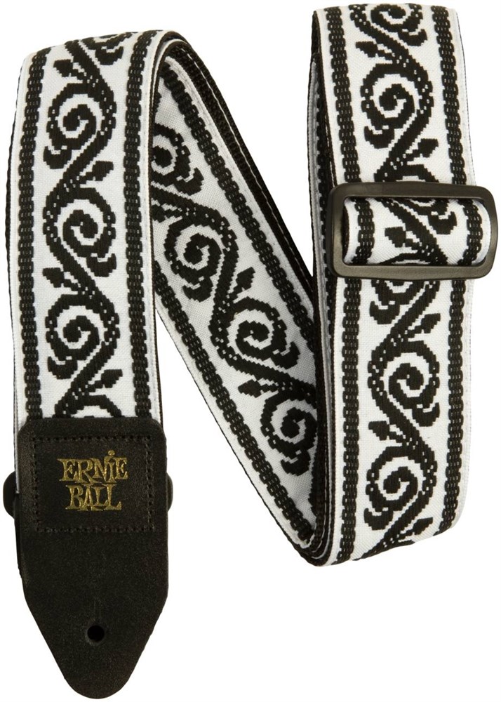 ERNIE BALL 5342 - гитарный ремень Black Vine Jacquard, полипропилен, кожаные нашивки