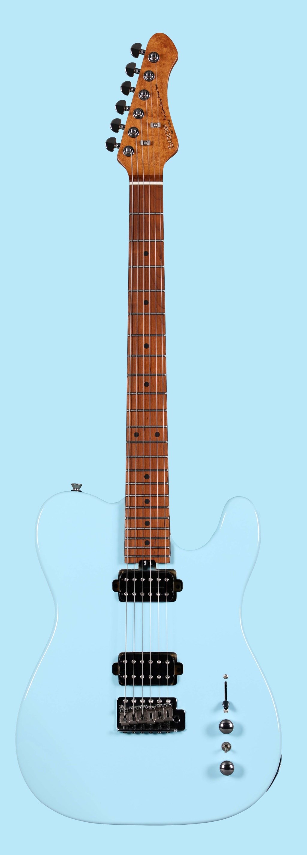 Звукосниматели: H-H. Бридж: Wilkinson WOV01. Управление: 1 регулятор громкости, 1 тона, 3-позиционный переключатель.