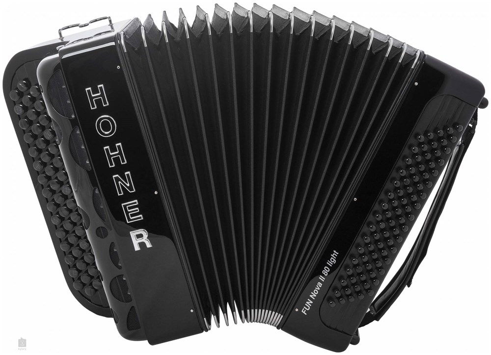 HOHNER Fun Nova II 80 Iight (A6002) black это инструмент размера 3/4, двухголосный, с европейской раскладкой клавиатуры в C. В комплект входят: ремни, чехол.
