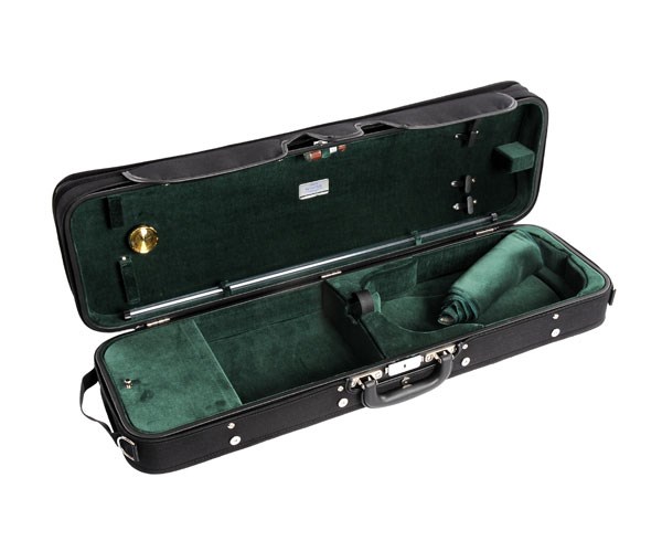 JW-3023-N-011 Футляр для скрипки размером 4/4, деревянный, черный/зеленый, Jakob Winter Футляр изготовлен вручную из 5 слоев тонкой фанеры. Сменная, водоотталкивающая ткань верха. Большой карман для нот.
