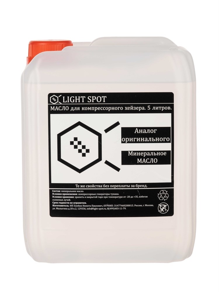 Масло для компрессорного хейзера производство компании Ligth spot. Состоит из химически чистого минерального масла.