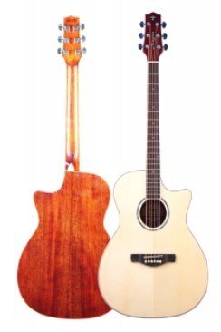 Верхняя дека: ель. Задняя дека и обечайка: красное дерево. Гриф: окоуме.
