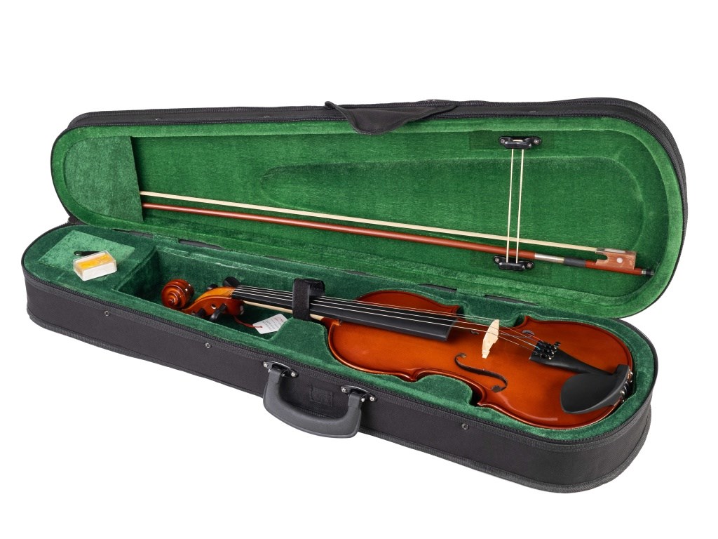 В комплекте: Футляр для скрипки. Канифоль. Круглый смычок из бразильского дерева.