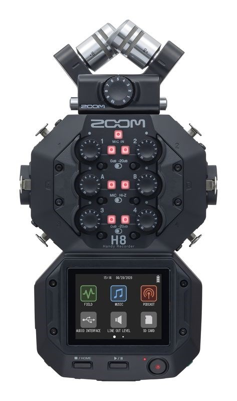 Zoom H8 – новый 12-трековый портативный рекордер с сенсорным интерфейсом управления и поддержкой сменных микрофонных капсюлей. Новый H8 станет вашем верным компаньоном, чем бы вы ни занимались — записью звука на выезде или созданием музыки и подкастов. Его цветной сенсорный дисплей H8 подстраивается под ваш рабочий процесс с помощью встроенных опций, выполненных в виде приложений, каждое из которых вызывается одним касанием.